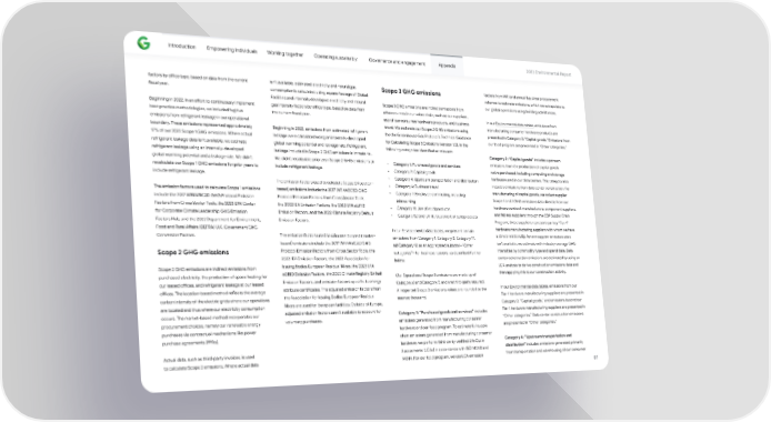 Introduction Empowering individuals Working together Operating sustainably Governance and engagement Appendix 2023 Environmental Repo爀琀 factors by o昀케ce type, based on data from the current isn’t available, estimated electricity and natural gas Scope 3 GHG emissions factors from WRI and annual Bay Area procurement 昀椀scal year. consumption is calculated using square footage of Global volumes to estimate emissions, which we extrapolate to Facilities and internally developed electricity and natural our global operations using building admi琀琀ances. Scope 3 GHG emissions are indirect emissions from Beginning in 2022, in an e昀昀o爀琀 to continuously implement gas intensity factors by o昀케ce type, based on data from other sources in our value chain, such as our suppliers, best practice methodologies, we included fugitive the current 昀椀scal year. In our Environmental data tables, emissions from use of our consumer hardware products, and business emissions from refrigerant leakage in our operational manufacturing consumer hardware products are travel. We estimate our Scope 3 GHG emissions using boundary. These emissions represented approximately Beginning in 2022, emissions from estimated refrigerant presented in Category 2: “Capital goods.” Emissions from the the Greenhouse Gas Protocol’s Technical Guidance 17% of our 2022 Scope 1 GHG emissions. Where actual leakage were calculated using an internally-developed our food program are presented in “Other categories.” for Calculating Scope 3 Emissions (version 1.0), in the refrigerant leakage data isn’t available, we estimate global warming potential and leakage rate. Refrigerant following categories identi昀椀ed as relevant: refrigerant leakage using an internally-developed leakage included in Scope 2 GHG emissions is immaterial. Category 2: “Capital goods” includes upstream global warming potential and a leakage rate. We didn’t We didn’t recalculate prior year Scope 2 GHG emissions to • Category 1: Purchased goods and services emissions from the production of capital goods recalculate our Scope 1 GHG emissions for prior years to include refrigerant leakage. • Category 2: Capital goods we’ve purchased, including computing and storage include refrigerant leakage. • Category 4: Upstream transpo爀琀ation and distribution hardware used in our data centers. This category also The emission factors used to calculate Scope 2 (location- • Category 6: Business travel includes emissions from data center construction. For The emission factors used to calculate Scope 1 emissions based) emissions include the 2017 WRI/WBCSD GHG • Category 7: Employee commuting, including manufacturing of capital goods, we collect supplier include the 2017 WRI/WBCSD GHG Protocol Emission Protocol Emission Factors from Cross Sector Tools, Scope 1 and 2 GHG emissions data directly from our teleworking Factors from Cross Sector Tools, the 2023 EPA Center the 2022 IEA Emission Factors, the 2023 EPA eGRID • Category 11: Use of sold products hardware contract manufacturers, component suppliers, for Corporate Climate Leadership GHG Emission Emission Factors, and the 2022 Climate Registry Default • Category 12: End-of-life treatment of sold products and fabless suppliers through the CDP Supply Chain Factors Hub, and the 2022 Depa爀琀ment for Environment, Emission Factors. Program; these suppliers represent our key “Tier 1” Food and Rural A昀昀airs (DEFRA) U.K. Government GHG hardware manufacturing suppliers with whom we have In our Environmental data tables, we present ce爀琀ain Conversion Factors. The emission factors used to calculate Scope 2 (market- a direct relationship. Where supplier emissions data emissions from Category 1, Category 2, Category 11, based) emissions include the 2017 WRI/WBCSD GHG isn’t available, we estimate with industry-average GHG nd Category 12 as an aggregated subtotal—“Other Scope 2 GHG emissions Protocol Emission Factors from Cross Sector Tools, the intensities by commodity type and spend data. Data categories”—for business reasons, as described fu爀琀her 2022 IEA Emission Factors, the 2022 Association for center construction emissions are estimated by using an below. Issuing Bodies European Residual Mixes, the 2023 EPA LCA analysis to derive construction emissions data and Scope 2 GHG emissions are indirect emissions from eGRID Emission Factors, the 2022 Climate Registry Default then applying this to our construction activity. purchased electricity, the production of space heating for Our Operational Scope 3 emissions are made up of Emission Factors, and emission factors speci昀椀c to energy our leased o昀케ces, and refrigerant leakage at our leased Category 6 and Category 7, and are third-pa爀琀y assured. a琀琀ribute ce爀琀i昀椀cates. The adjusted emission factors from In our Environmental data tables, emissions from our o昀케ces. The location-based method re昀氀ects the average All repo爀琀ed Scope 3 emissions values are rounded to the the Association for Issuing Bodies European Residual Tier 1 hardware manufacturing suppliers are presented in carbon intensity of the electric grids where our operations nearest thousand. Mixes are used for European facilities. Outside of Europe, Category 2: “Capital goods,” and emissions beyond our are located and thus where our electricity consumption adjusted emission factors aren’t available to account for Tier 1 hardware manufacturing suppliers are presented in occurs. The market-based method incorporates our Category 1: “Purchased goods and services” includes “Other categories.” Data center construction emissions voluntary purchases. procurement choices, namely our renewable energy emissions generated from manufacturing consumer are presented in “Other categories.” purchases via contractual mechanisms like power hardware and our food program. To estimate full supply purchase agreements (PPAs)