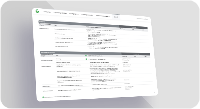 Introduction Empowering individuals Working together Operating sustainably Governance and engagement Appendix 2023 Environmental Repo爀琀 MATERIALS Frameworks Environmental disclosure Topic 2023 Environmental Repo爀琀 location CDP Climate TCFD SASB category • Operating sustainably - Circular economy - Our approach - Reducing data center waste - Data center hardware components refurbished or resold Zero Waste to Land昀椀ll Pe爀昀ormance indicators • Appendix - Environmental data tables • Operating sustainably - Net-zero carbon - Our approach - Reducing carbon emissions - LEED-ce爀琀i昀椀ed o昀케ce space Energy-e昀케cient and low-carbon facilities - O昀케ces • Appendix - Environmental data tables • Operating sustainably - Circular economy - Our approach - Reducing data center waste - Zero Waste to Land昀椀ll progress and ce爀琀i昀椀cations Zero Waste to Land昀椀ll; Working with suppliers - Manufacturing waste • Operating sustainably - Circular economy - Our approach - Building circular workplaces and stores - Workplace operations; Reducing data center waste - Zero Waste to Land昀椀ll Land昀椀ll diversion rate for o昀케ces and data centers • Appendix - Environmental data tables • Operating sustainably - Circular economy - Our approach - Building circular workplaces Food waste dive爀琀ed from land昀椀ll and stores - Workplace operations - Food waste NATURE AND BIODIVERSITY Frameworks Environmental disclosure Topic 2023 Environmental Repo爀琀 location CDP Climate TCFD SASB category Our strategy • Operating sustainably - Nature and biodiversity C2. Risks and oppo爀琀unities Governance and oversight C3. Business strategy • Governance and engagement - Sustainability governance C1. Governance Board and/or management oversight Integration of nature considerations into our buildings, operations, • Operating sustainably - Nature and biodiversity - Our approach - Building for biodiversity - C2. Risks and oppo爀琀unities Management approach and supply chain Designing for ecology; Bringing nature back to cities; Sourcing responsibly C3. Business strategy • Operating sustainably - Nature and biodiversity - Our approach - Protecting nature and making it more accessible; Developing technology to address biodiversity loss Nature-related adaptation and mitigation strategy and activities • Working together - Our approach - Suppo爀琀ing pa爀琀ners - Governments and C2. Risks and oppo爀琀unities C3. Business strategy intergovernmental organizations - Environmental Insights Explorer; Adaptation suppo爀琀 for communities; Investing in breakthrough innovation - Ocean ecosystems Approach to managing progress against internal and external • Operating sustainably - Nature and biodiversity - Our approach nature-related targets and expectations Engagement with external targets and initiatives related to nature • Working together - Our approach - Suppo爀琀ing pa爀琀ners - Governments and intergovernmental organizations; Researchers, academics, and NGOs C15. Biodiversity and biodiversity • Governance and engagement - Pa爀琀nerships Goals and targets Nature- and biodiversity-related targets and progress against goals • Introduction - Targets and progress summary C15. Biodiversity • Operating sustainably - Nature and biodiversity - Our approach - Building for biodiversity - C2. Risks and oppo爀琀unities Pe爀昀ormance indicators Native habitat restored and created on our Bay Area campuses C3. Business strategy Designing for ecology C15. Biodiversity Denotes sections that contain elements of our climate transition plan 99