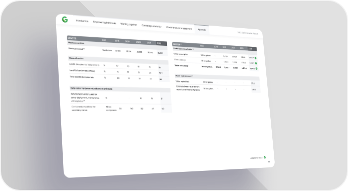 Introduction Empowering individuals Working together Operating sustainably Governance and engagement Appendix 2023 Environmental Repo爀琀 WASTE Unit 2018 2019 2020 2021 2022 WATER 167 Unit 2018 2019 2020 2021 2022 168 Waste generation Global operational water 164 Waste generated Metric tons 57,100 48,100 28,900 28,200 38,200 Water consumption Million gallons - 3,412.4 3,748.9 4,561.8 5,564.7 Water discharge Million gallons - 1,748.3 1,939.8 1,734.8 2,034.9 Waste diversion Water withdrawal Million gallons 4,169.8 5,160.7 5,688.7 6,296.6 7,599.6 Land昀椀ll diversion rate (data centers) % 87 90 81 78 86 165 Land昀椀ll diversion rate (o昀케ces) % 76 71 71 64 75 169 Water replenishment Total land昀椀ll diversion rate % 80 77 77 77 84 Water replenished Million gallons - - - - 271.0 Contracted water replenishment Million gallons - - - - 1,317.2 capacity over lifetime of projects Data center hardware refurbishment and reuse Refurbished inventory used for server deployment, maintenance, % - - 10 13 21 166 and upgrades Components resold into the Million 3.5 10.0 8.2 4.9 5.0 secondary market components Assured for 2022 94