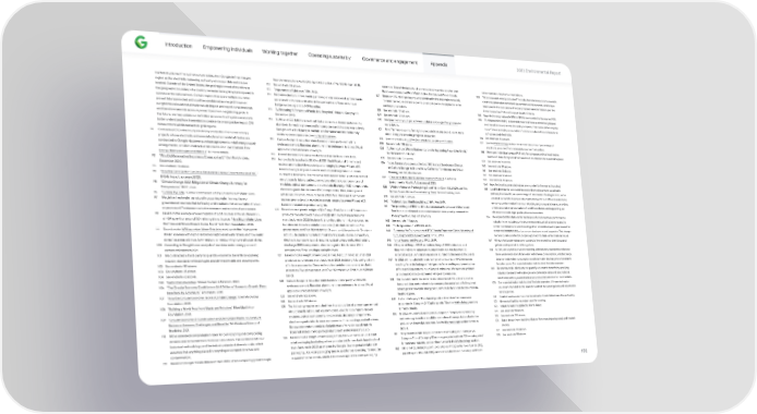 Introduction Empowering individuals Working together Operating sustainably Governance and engagement Appendix 2023 Environmental Repo爀琀 market structures. If no such structure exists, then Google de昀椀nes the grid Search interest from April 2018–April 2023 to that of April 2013–April 2018. variations. Doesn’t include stand-alone accessory products other than not emi琀琀ed as a result of our operations. region as the electricity-balancing authority where our data centers are 112 See endnote 35 above. Pixel phone cases, and Pixel Watch Active, Stretch, and Woven bands. 153 “Total renewable energy allocated” includes the total amount of renewable located. Outside of the United States, the grid region most o昀琀en refers to 127 113 “Impo爀琀ance of Methane,” EPA, 2021. Based on U.S. retail packaging weight with adhesive materials excluded. electricity generation conveyed via contractual instruments, which have the geographic boundary of a country, because most grid system operators 114 Percent reduction in food waste per Googler was calculated as food waste To meet the request of some clients, plastic stickers are applied to some been used in the calculation of Scope 2 market-based emissions per the operate at the national level. Ce爀琀ain regions that span multiple countries Greenhouse Gas Protocol Scope 2 Quality Criteria. generated in kitchens and cafes at Google’s global o昀케ces per unique packaging variations. are well interconnected and could be considered as one grid; however, 128 154 badge swipes, against a 2019 baseline. See endnote 127 above. Repo爀琀ed energy values (in MW or MWh) are rounded to the nearest 100. our grid mix calculations already include impo爀琀 and expo爀琀 considerations 115 “A Whopping 91 Percent of Plastic Isn’t Recycled,” National Geographic, 129 See endnote 126 above. 155 “Purchased electricity” is electricity sourced from an electrical grid and and therefore take into account power 昀氀ows from neighboring grids. In December 2018. 130 See Learn when you’ll get so昀琀ware updates on Google Pixel phones for purchased from a local electric utility company. This metric di昀昀ers slightly the future, we may update our de昀椀nition as we work with grid operators to 116 UL110 and IEEE 1680.1 are multi-a琀琀ribute, consensus-based sustainability more details. from “Total electricity consumption,” which includes both purchased and be琀琀er understand how transmission constraints or congestion impact CFE 131 self-generated electricity. standards for mobile phones and for computers and displays, respectively. We o昀昀er free recycling for eligible products from any brand. Learn more measurement within and across grid regions. 156 Google uses a third pa爀琀y to validate conformance and independently about Google’s recycling program on our site. See endnote 155 above. 91 Contracted CFE is the hourly electricity production from clean energy ce爀琀ify to these standards. See UL Spot Database. 132 Learn more about UL 2799 Zero Waste to Land昀椀ll ce爀琀i昀椀cation. 157 See the Methodology section for an overview of our “percentage of 117 projects whose electricity and associated environmental a琀琀ributes are Carbon footprint reduction claim based on third-pa爀琀y veri昀椀ed life 133 See endnote 108 above. electricity procured from renewable sources” calculation. 158 contracted to Google via power purchase agreements, retail energy supply cycle assessment. Recycled aluminum in the enclosures is at least 9% of 134 “A Warning Sign: Where Biodiversity Loss Is Happening Around the World,” We repo爀琀 individual campus PUE only for campuses with at least twelve arrangements, or other contractual structures. See “24/7 Carbon-Free applicable product based on weight. World Wildlife Fund, 2021. months of data. All repo爀琀ed PUE values are rounded to the hundredths place. Energy: Methodologies and Metrics” for more details. 118 135 Doesn’t include third-pa爀琀y products such as the Nest x Yale Lock. See endnote 134 above. 159 See endnote 76 above. 92 “Why Did Renewables Become so Cheap so Fast?” Our World in Data, 119 For products launched in 2020 and 2021: Nest, Pixel, and Chromecast 136 “From Savanna to Suburb: E昀昀ects of 160 Years of Landscape Change 160 See endnote 89 above. December 2020. devices are made with recycled plastic ranging between 9% and 68% on Carbon Storage in Silicon Valley, California,” Landscape and Urban 161 See endnote 12 above. 93 Planning, vol. 195, March 2020. See endnote 13 above. based on weight of plastic used in each respective product launched 162 See endnote 90 above. during this timeframe. The following items are excluded: plastics in printed 137 94 “How the Tech Sector Can Drive Renewable Energy Oppo爀琀unities in APAC,” “Charleston Retention Basin Improvement Project,” California 163 See endnote 90 above. ENGIE Impact, accessed 2023. circuit boards, labels, cables, connectors, electronic components and Environmental Quality Act, accessed 2023. 164 Repo爀琀ed waste generated values are rounded to the nearest hundred. 95 modules, optical components, electrostatic discharge (ESD) components, 138 “Climate Change 2022: Mitigation of Climate Change Summary for “Western Monarch Thanksgiving Count Tallies Over 330,000 Bu琀琀e爀昀lies 165 Land昀椀ll diversion is calculated as waste dive爀琀ed to a more sustainable electromagnetic inte爀昀erence (EMI) components, 昀椀lms, coatings and Policymakers,” IPCC, 2022. Before Storms Ba琀琀er Overwintering Sites,” Xerces Society, 2023. pathway than land昀椀ll, as a percentage of total waste. Sta爀琀ing in 2022, we’ve 96 adhesives. For products launched in 2022: Pixel, Nest, and Chromecast 139 “Turning the Tide,” Global Commission on the Economics of Water, 2023. See endnote 13 above. updated our land昀椀ll diversion rate methodology for our o昀케ce o
